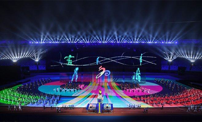 12月19日晚,慶祝澳門回歸祖國25周年文藝晚會在澳門東亞運動會體育館舉行。中共中央總書記、國家主席、中央軍委主席習近平觀看演出。光祥多系列大屏見證這一歷史性重要時刻,為晚會現場提供了全方位顯示屏解決方案,點亮了澳門的璀璨華彩。